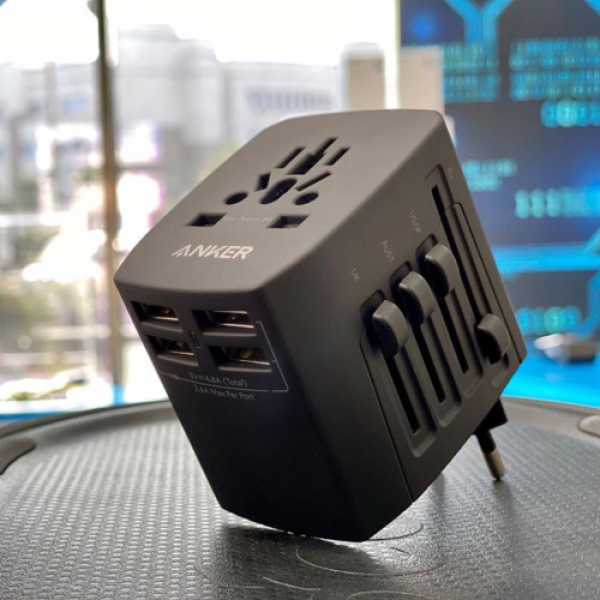 انكر باوربورت شاحن سفرمع 4 منافذ يو اس بي- الاسود