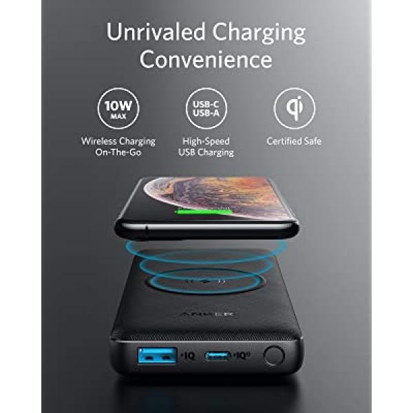 باور بانك من أنكر شحن وايرليس يتيح لك الشحن المعتمد من Qi والذي يصل إلى 10 واط شحن iPhone 11 بالكامل في أقل من 4 ساعات بغض النظر عن مكان وجودك يمتاز بمنفذ باور ديليفري 18 وات و يو إس بي 18 وات
