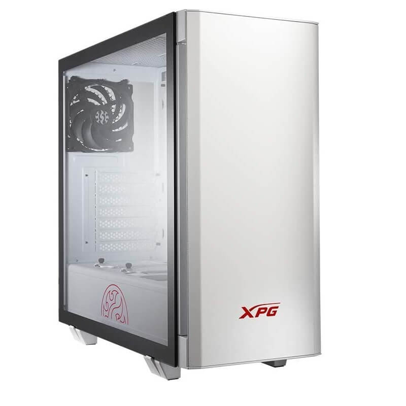 - XPG Invader Mid Tower كيسة بيضاء بزجاج مقوى