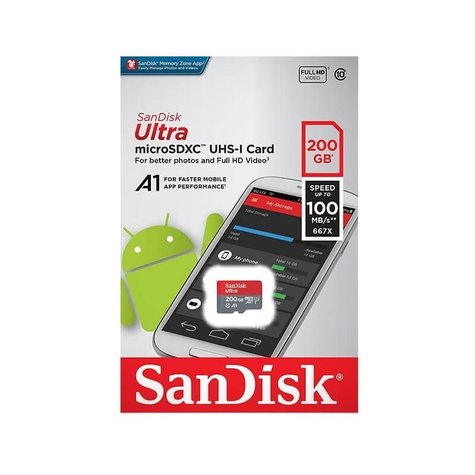 SanDisk 200GB MicroSD Card, Ultra Memory Class10, UHS-I, Read 100MB/s, SDSQUAR-200G-GN6MN