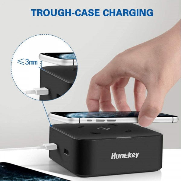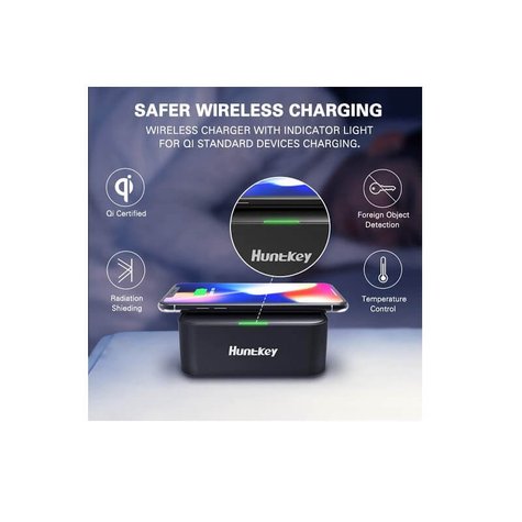 - شاحن لاسلكي سريع Huntkey بقوة 10 واط مع 2 منفذ USB
