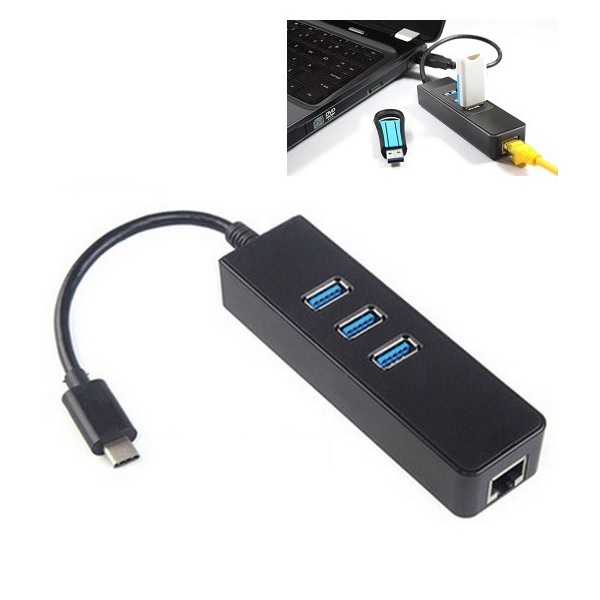 - USB-C / Type-C to 3 Port USB 3.0 HUB + Network Gigabit
