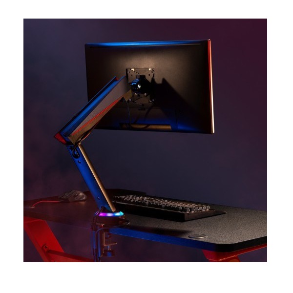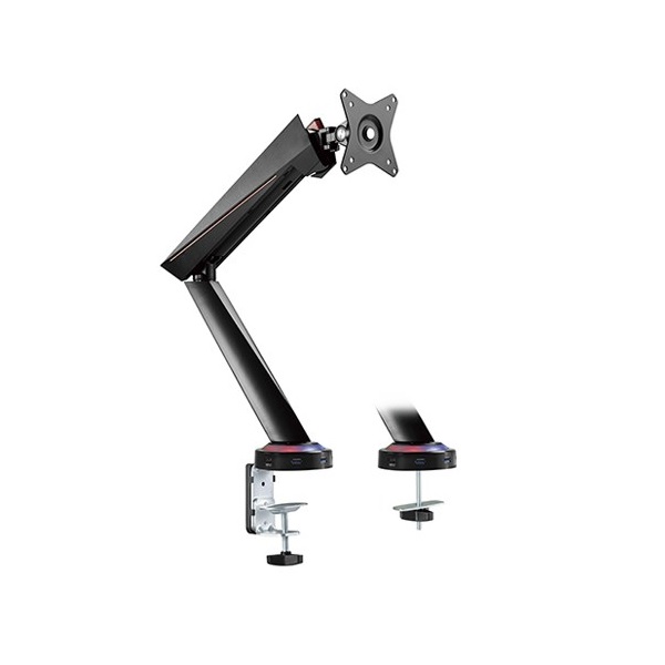 ●Built-in Spring Tension Gauge: for perfect weight adjustments ●2 easily accessible USB 3.0 ports & 2 multi-media Ports ●Spring-Assisted Mechanism: allows to easily move up and down ●Cool Lighting Effect: blends seamlessly into any gaming station ●Detachable VESA Plate Design: enables easy installation ●Built-in Cable Management: for an organized and neat workspace