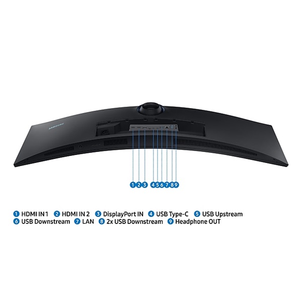 DisplayHDR 400 Dual QHD Display ، مكبرات الصوت المدمجة ، KVM Switch دعم الألوان: بحد أقصى 1.07B sRGB التغطية: 125٪ (نموذجي) تقنية QLED للألوان الجذابة 32: 9 Super Ultra-Wide 1800R Curved Screen USB Type-C ( 90 واط شحن وعرض) معدل التحديث: 60 هرتز HDMI (DP: بحد أقصى 120 هرتز) إيثرنت (منفذ LAN) صورة تلو صورة منافذ HDMI مزدوجة مثبتة على الحائط