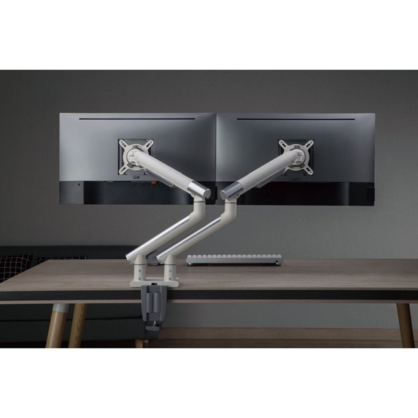 Twisted Minds حامل للطاولة ذو ذراع نحيفة ذو شاشة مزدوجة 17 - 32 ، مسطح ومنحني ، أبيض