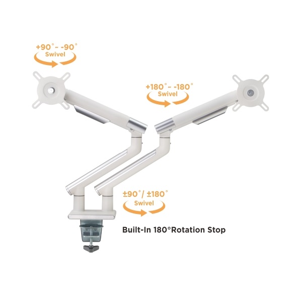 إيقاف دوران 180 درجة: يمنع ذراع الشاشة من التأرجح في الشاشات أو الجدران