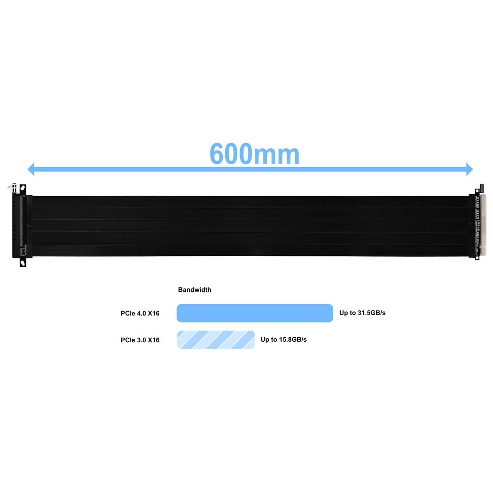 اللون: أسود الواجهة: PCI-e x 16 كابل PCIe Riser: Gen 4.0 طول الكابل: 600 مم