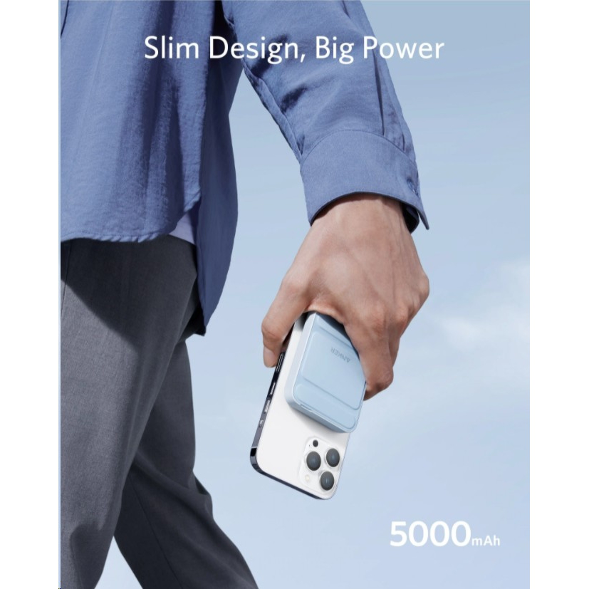 بطارية أنكر 622 مغناطيسية (ماجو) 5K - أزرق يتم تثبيته مغناطيسيًا في مكانه، شاحن محمول لاسلكي مغناطيسي بقدرة 5000 مللي أمبير في الساعة مع كابل USB-C مدمج بقدرة 5 وات، اتصال مغناطيسي قوي 9N مقاوم للانزلاق وتصميم نحيف للغاية مقاس 0.5 بوصة
