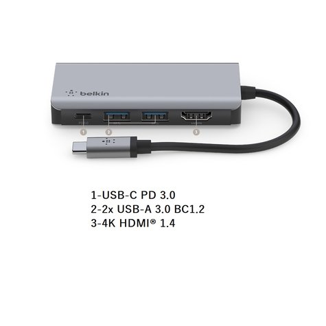 بلكين كونكت USB-C يو اس بي-سي بي دي 3.0 2x USB-A 3.0 BC1.2 4 كيه اتش دي ام اي 1.4