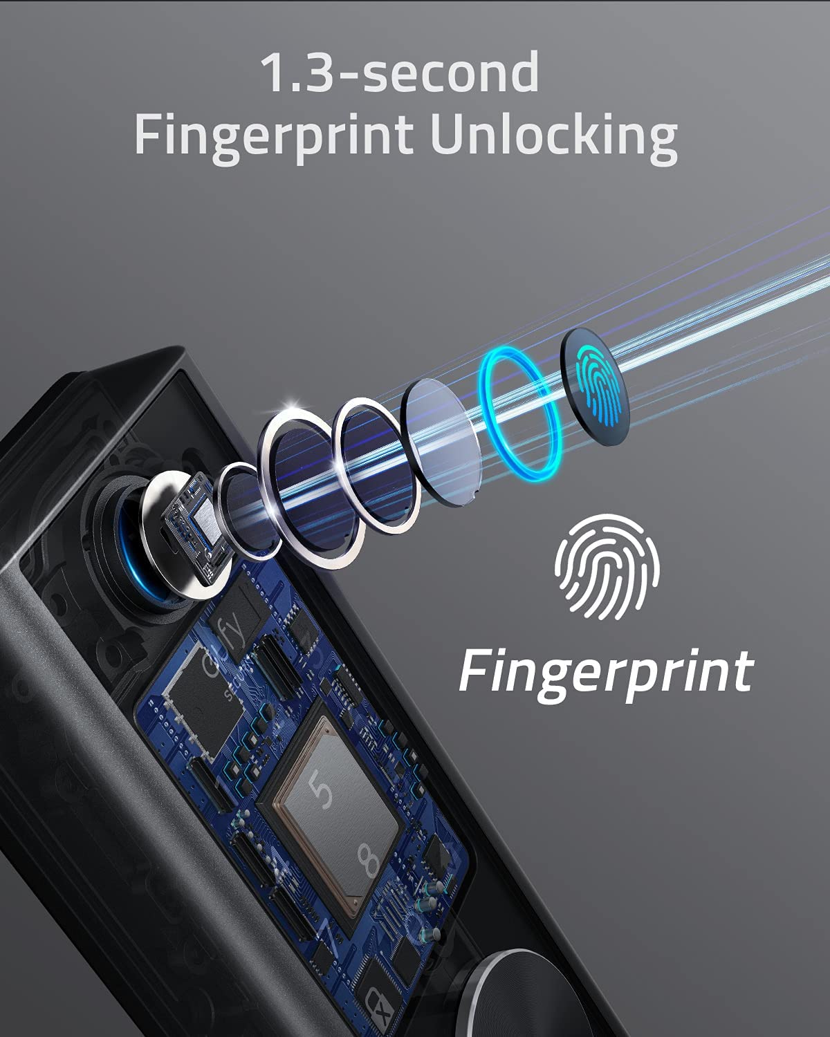 قفل ذكي يعمل باللمس من Eufy Security افتح قفل الباب الذكي الذي يعمل ببصمة الإصبع في لحظة باستخدام بصمة إصبعك، وافتح القفل باستخدام تطبيق Eufy Security عبر البلوتوث أو Wi-Fi، أو باستخدام لوحة المفاتيح الإلكترونية أو المفتاح.. حماية من جميع الأحوال الجوية: مع تصنيف IP65 لمقاومة الطقس، قفل ذكي جاهز لحماية المنازل في أي مكان. إنه قادر على تحمل درجات حرارة تتراوح من -30 درجة مئوية/-22 درجة فهرنهايت إلى 70 درجة مئوية/158 درجة فهرنهايت بالإضافة إلى هطول الأمطار. القفل التلقائي: يكتشف المستشعر المدمج عندما يكون بابك مغلقًا ويقفله تلقائيًا، مع الحفاظ على منزلك آمن حتى عندما تكون في عجلة من أمرك.. التعرف على بصمة الإصبع: يتعرف القفل الذكي على بصمة إصبعك خلال 0.3 ثانية فقط، ويفتح باب منزلك في ثانية واحدة. أسرع من التحسس بمفاتيحك..