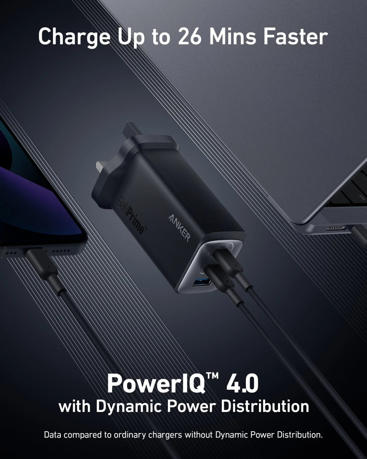 شاحن أنكر USB C شاحن أنكر 735 GaNPrime 65 واط بفضل منفذي USB-C ومنفذ USB-A، يمكنك شحن هاتفك وجهاز الكمبيوتر المحمول وسماعات الأذن في وقت واحد باستخدام شاحن واحد. قم بتوصيل جهاز واحد لشحن ما يصل إلى 65 واط. تتميز تقنية PowerIQ 4.0 الحصرية لدينا بتوزيع الطاقة الديناميكي، الذي يكتشف احتياجات الطاقة للأجهزة المتصلة ويضبط الطاقة تلقائيًا لضمان شحن أسرع وأكثر كفاءة.
