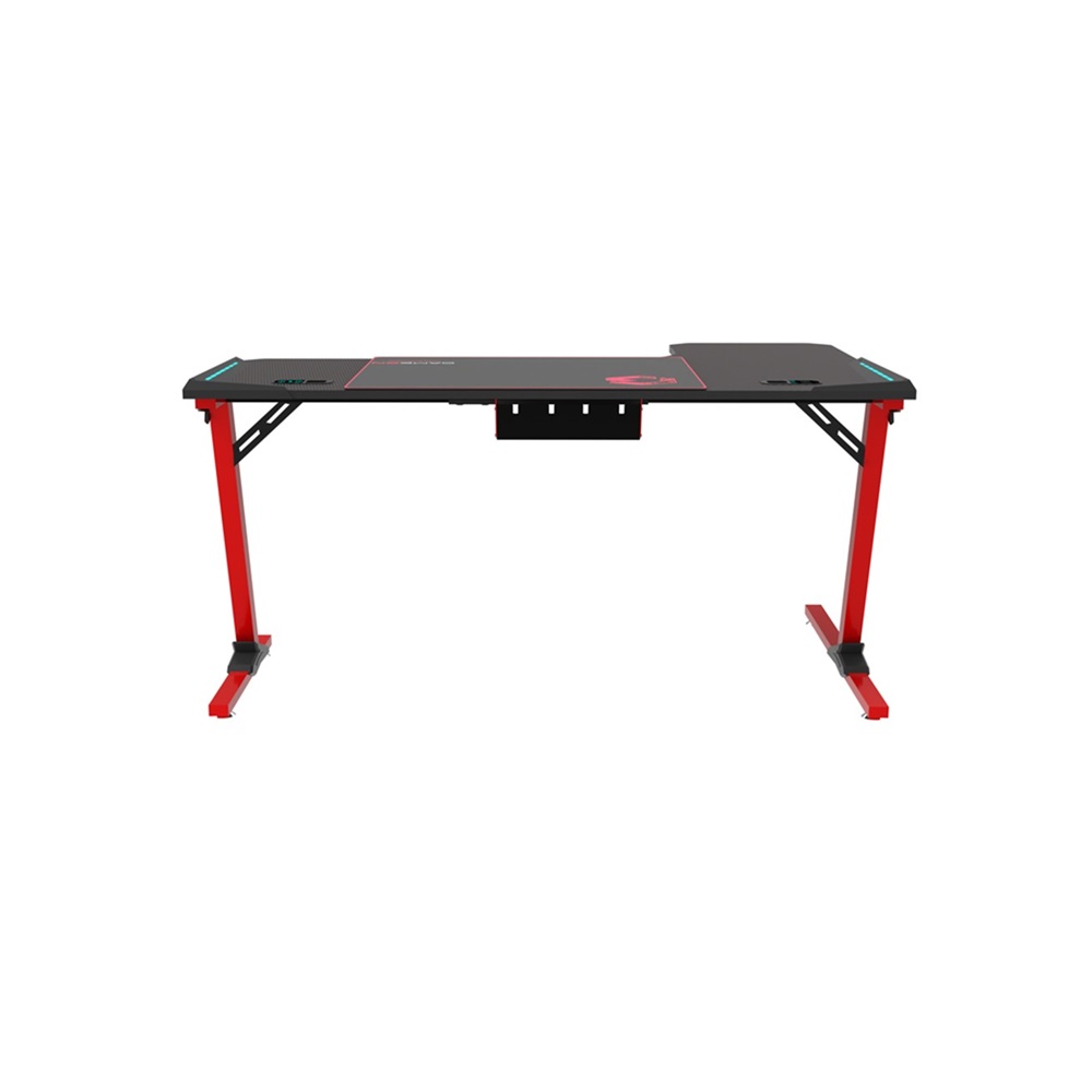 حجم الطاولة: 140-60-72 سم لوحة الماوس: 800 × 300 × 3 مم شاحن لاسلكي Qi إدارة الكابلات خطاف سماعة الرأس حامل لوحة الألعاب حامل الكأس USB Hub
