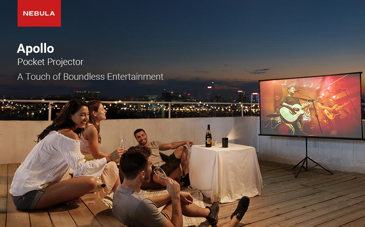 بروجكتر الجيب أنكر نيبولا أبولو 200 ANSI – أسود جهاز عرض صغير واي فاي | مصباح DLP بقوة 200 لومن ANSI | مكبر صوت 6 وات | صورة 100 بوصة | 4 ساعات من تشغيل الفيديو | أندرويد 7.1 | لوحة اللمس