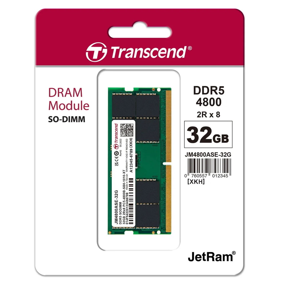 ذاكرة الوصول العشوائي للكمبيوتر المحمول Transcend 32 جيجا بايت 4800 ميجا هرتز DDR5 SODIMM