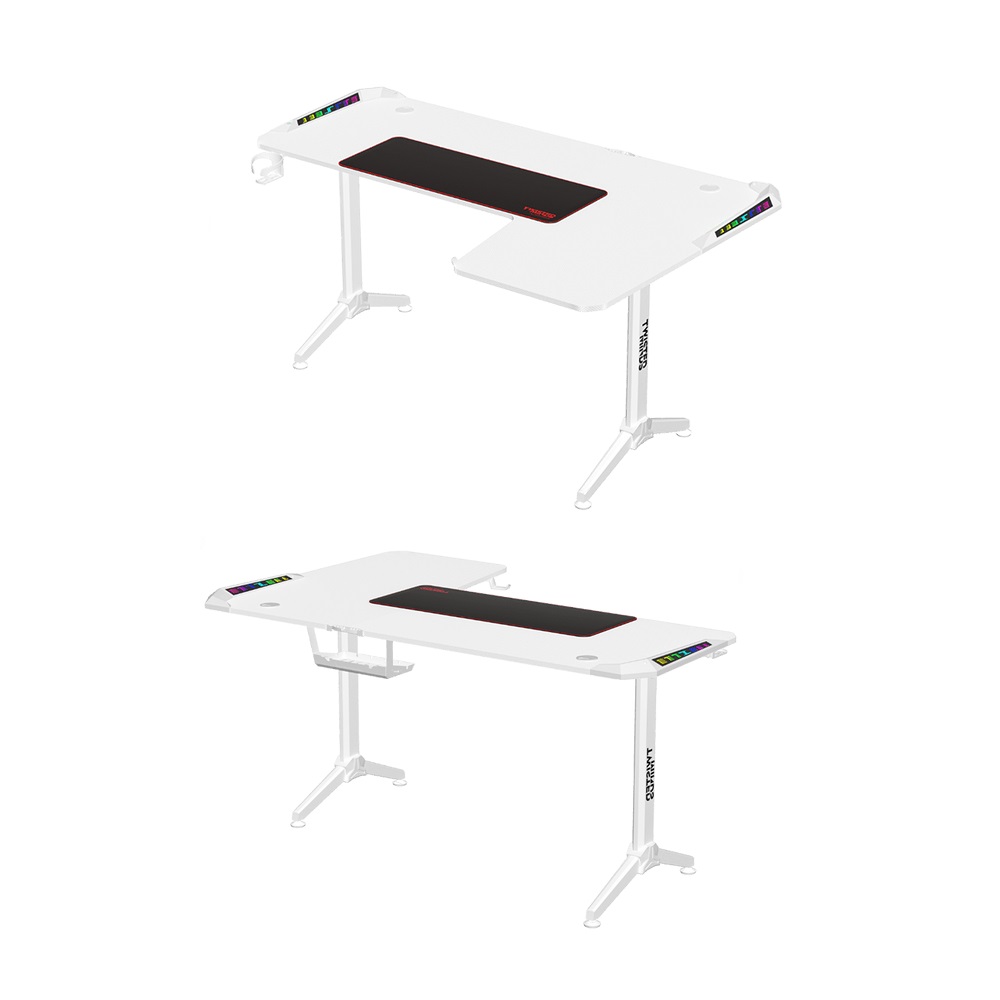 • تصميم على شكل حرف L: يوفر مساحة عمل واسعة ومريحة لإعدادات الألعاب وتنفيذ المهام المتعددة.