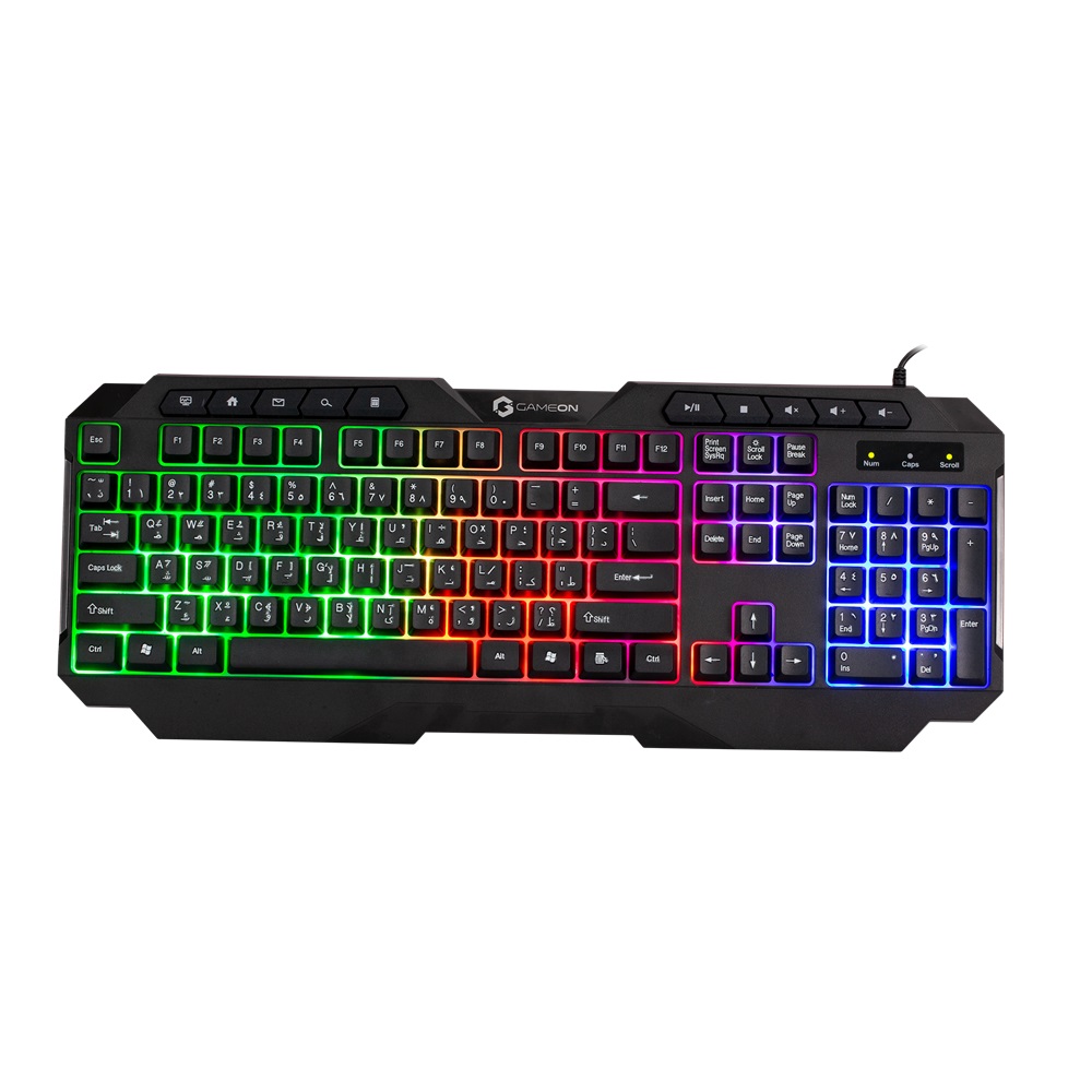 • Spill-resistant design, long-lasting key caps, easy clean 104 + 10 keys, USB 2.0 (1.5m cable).
