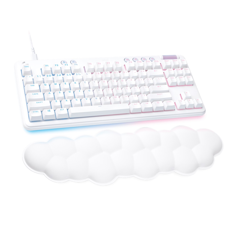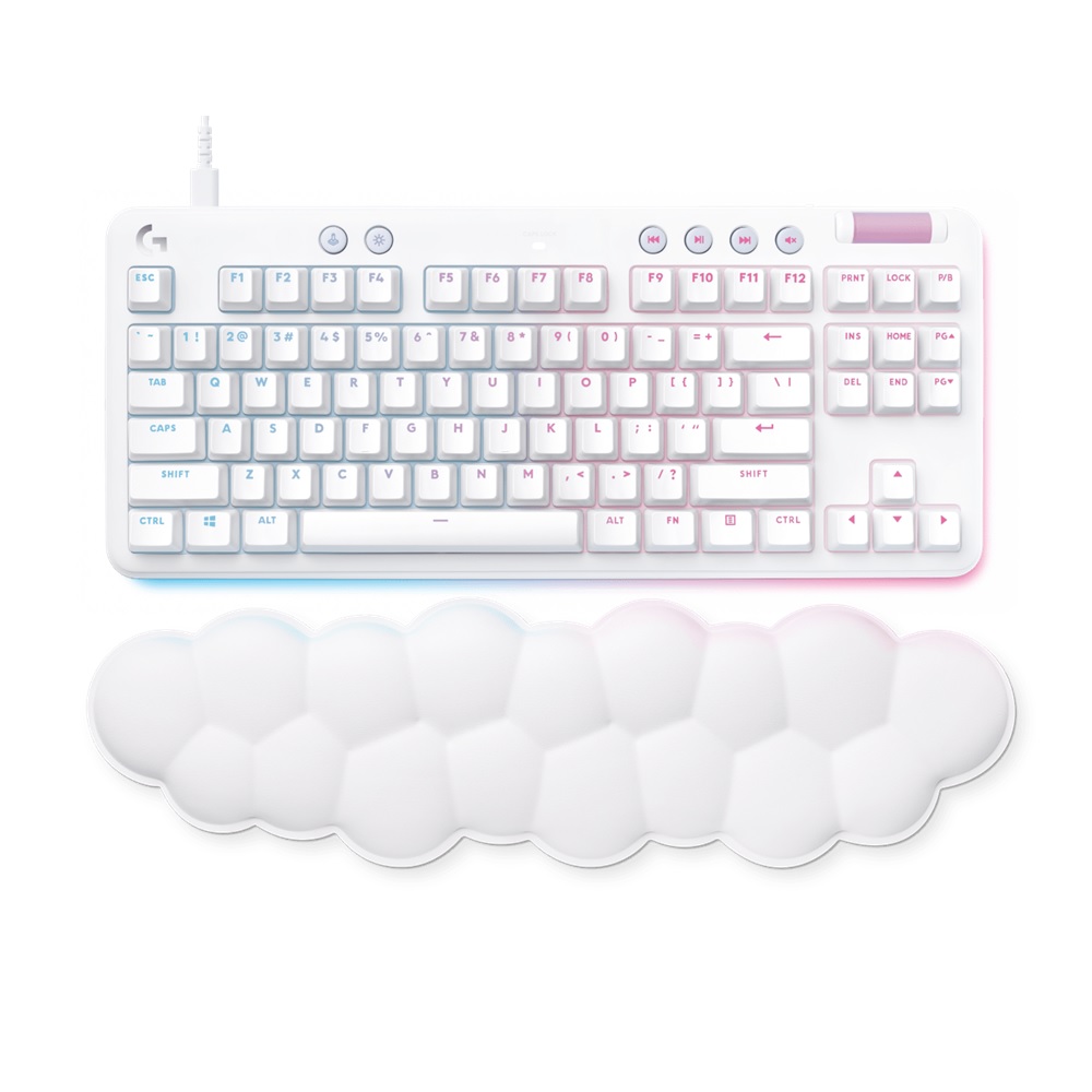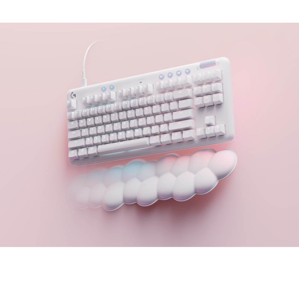 From the Aurora Collection, G713 is a wired, compact TKL keyboard designed for comfort with included cloud-soft palm rest. Fully equipped with ethereal RGB lighting and your choice of GX mechanical switches. Comes in White Mist. Colorway accessories sold separately.