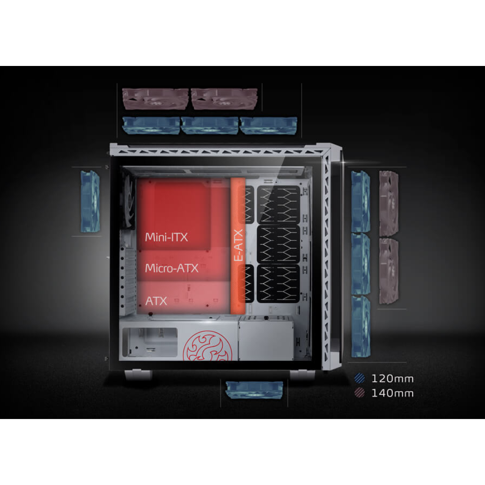 Revel in the XPG BATTLECRUISER’s insane cooling capabilities including a high air flow layout, four 120mm ARGB fans as well as support for multiple radiators (up to 360mm ) and a CPU cooler (up to 170mm).