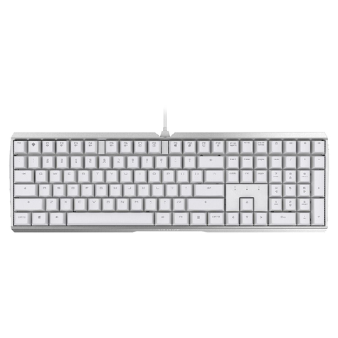The Cherry MX 3.0S RGB White Mechanical Keyboard is a full-sized keyboard that features original Cherry MX Blue switches, a technical design, aluminium housing, RGB lighting, full N-key rollover, anti-ghosting, windows lock key, keyboard shortcuts, abrasion-resistant laser-etched keycaps and a detachable USB interface.