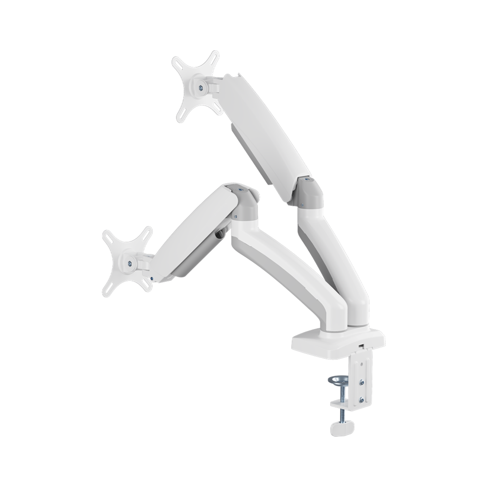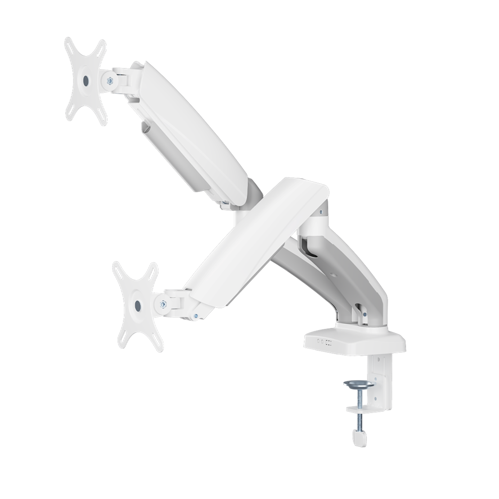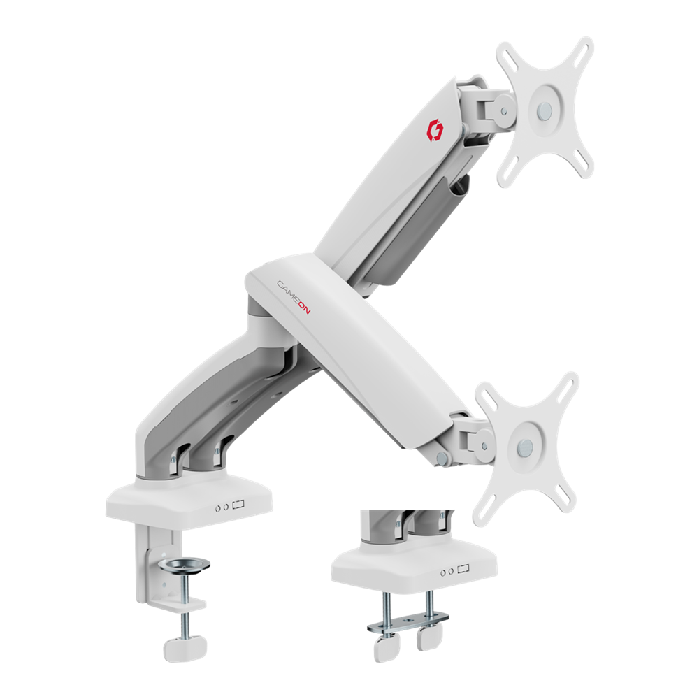 - جيم أون GO5450 حامل شاشة مزدوج – ذراع مكتبي لشاشتين مقاس 17 إلى 32 بوصة – قابل للحركة الكاملة – مناسب للشاشات المسطحة والمنحنية – حمولة من 2 إلى 9 كجم – أبيض اللون