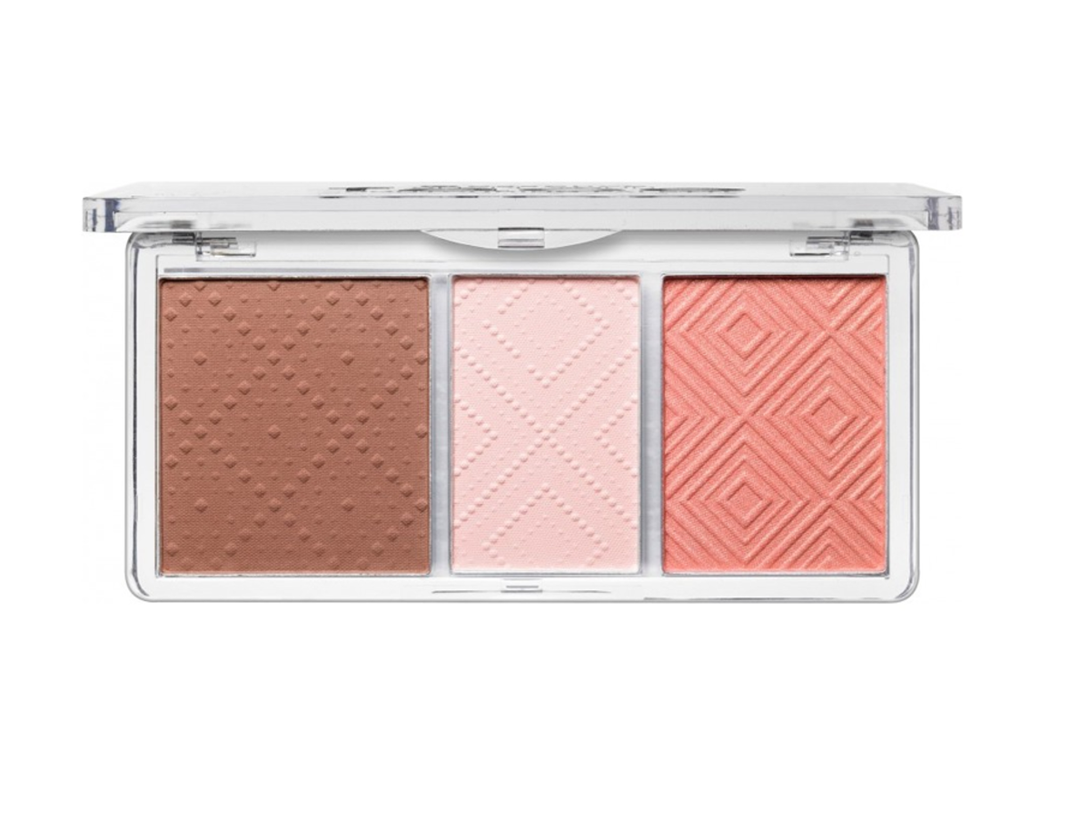1، 2، 3 – خطوط مثالية! تجمع هذه اللوحة كل ما تحتاجينه لتحديد الوجه. يعمل البرونزر غير اللامع على إخفاء مناطق الجلد بشكل واضح بينما يعمل الهايلايتر غير اللامع على إبرازها لإبراز أفضل ملامحك. يضيف أحمر الخدود ذو اللمعان الخفيف لمسة منعشة.