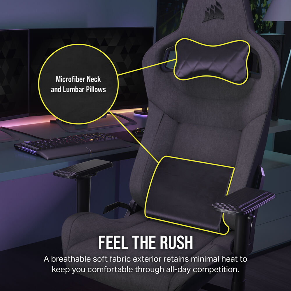 - كرسي الألعاب كورسير T3 راش قماشي (فحمي)، يتحمل حتى 120 كجم