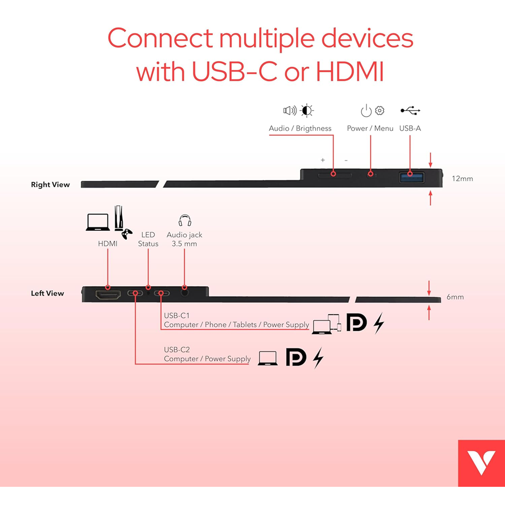 فيرباتيم شاشة عرض محمولة تعمل باللمس مقاس 15.6 بوصة بدقة FHD وتقنية IPS منافذ USB-C مزدوجة وHDMI بكامل الميزات متوافقة مع الهواتف الذكية، أجهزة اللابتوب، وحدات التحكم بالألعاب، الكاميرات، الأجهزة اللوحية والمزيد.