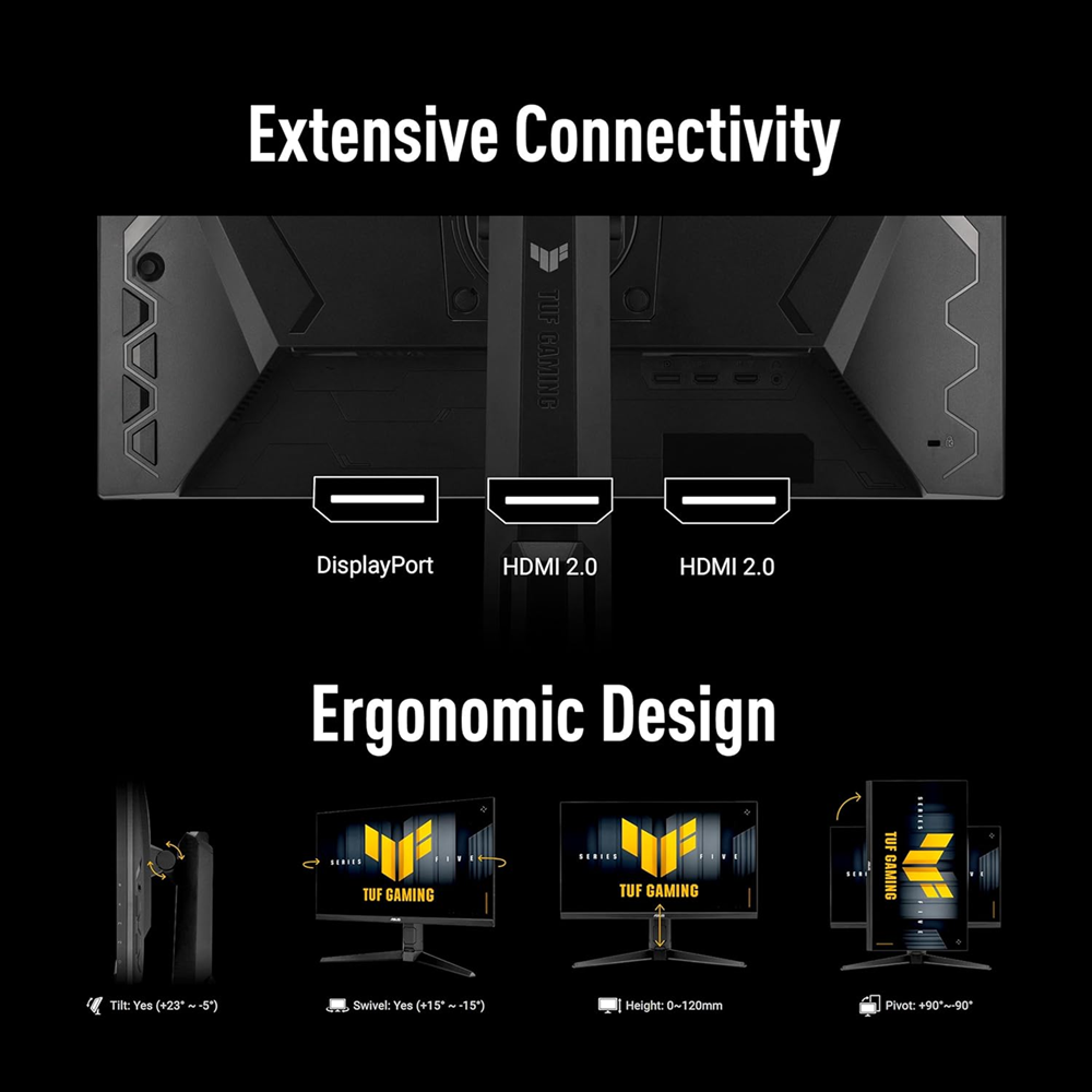 شاشة ألعاب ASUS مقاس 27 بوصة TUF Gaming VG279QML5A بمعدل تحديث 240 هرتز، استجابة 0.3 مللي ثانية، لوحة Fast IPS، دقة Full HD، مزودة بمكبرات صوت مدعومة بالذكاء الاصطناعي، قابلة للتدوير وقابلة للتعديل