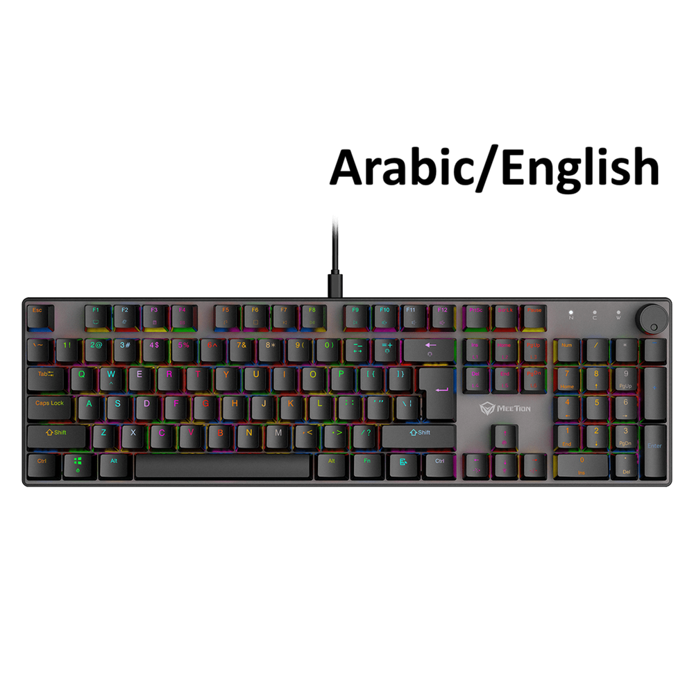 - لوحة مفاتيح ألعاب ميكانيكية MeeTion MK009 Pro بإضاءة RGB قابلة للتبديل السريع (Hot-swap) بمفاتيح Red Switch – عربي / إنجليزي