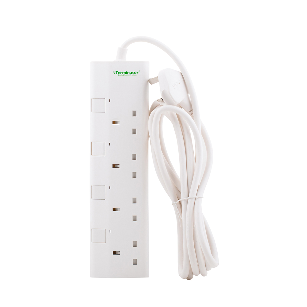 تيرميناتور وصلة كهرباء بريطانية 4 مخارج مع مفاتيح تشغيل فردية، مؤشرات ضوئية، كابل 1.25 مم² بطول 3 متر وقابس بمصهر 13 أمبير