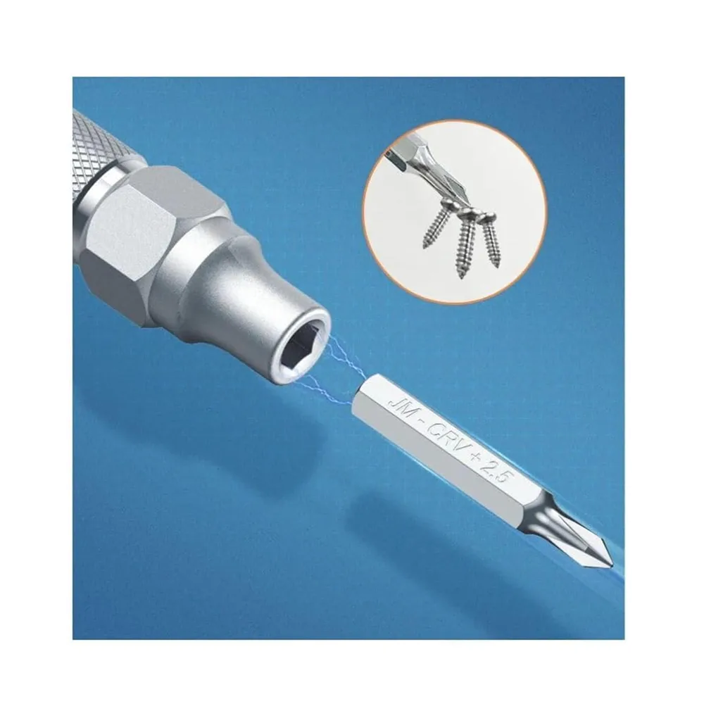 حامل رؤوس مغناطيسي: يثبت البراغي والرؤوس بإحكام، مما يمنع سقوطها أو فقدانها أثناء عمليات الإصلاح الدقيقة.
