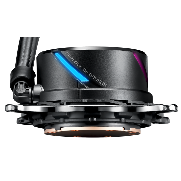 مراوح الرادياتير المصممة من قبل ROG لتحسين تدفق الهواء والضغط الساكن يبرز غطاء مضخة الطلاء RGB و NCVM القابل للتحكم بشكل فردي الجمال الأنيق والحديث مصممة لتكمل اللوحات الأم ROG ، في مركز الصدارة في جهازك أنابيب مقواة ذات أكمام لزيادة المتانة