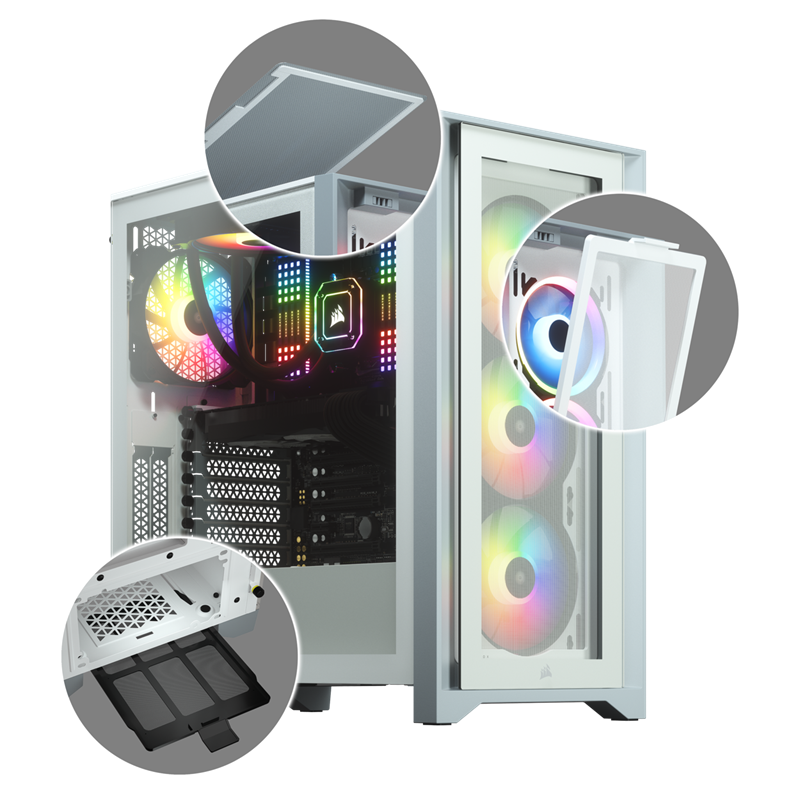 - كيسة Corsair 4000X RGB من الزجاج المقوى Mid Tower ATX أبيض