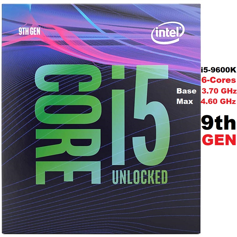 Intel i5-9600K Processor, 6 Cores, 6 Threads, 9MB Cache, Base 3.70GHz, Max 4.6GHz, LGA1151, 9th Generation, 9600K