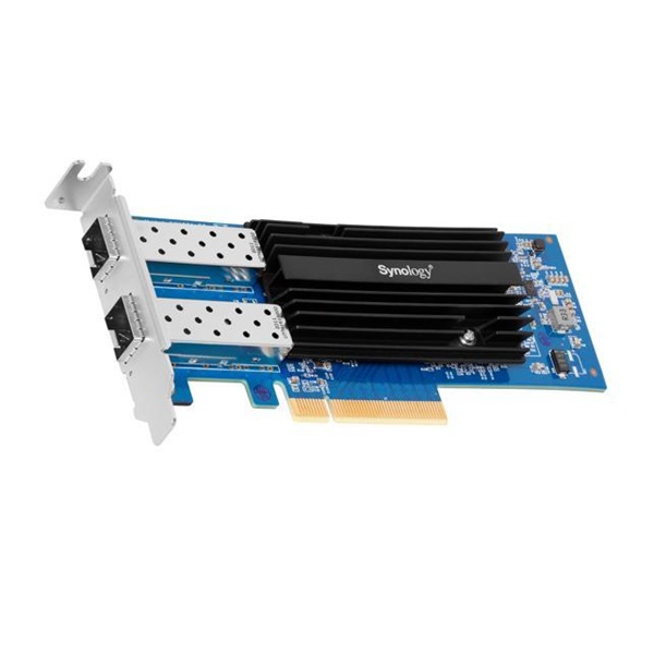For Select Synology Devices PCIe 3.0 x8 Host Interface 2 x 10G Ethernet Ports Supports SFP+ Modules Link Aggregation CPU Offloading Technologies Includes Low- & Full-Height Brackets