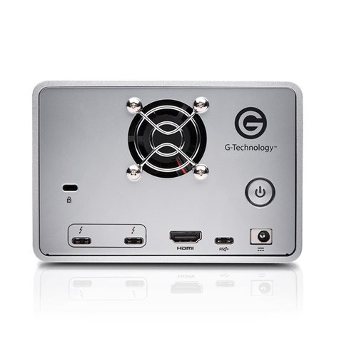 The G-RAID with Thunderbolt 3 is a high-performance, dual Enterprise-class 7200RPM hard drive storage system featuring Thunderbolt 3, USB–C™ (supports USB 3.1 Gen 2) and HDMI® connectivity for ultimate flexibility. With removable drives, this ultra-fast, high-capacity storage solution is designed for the most demanding applications while easily supporting multi-stream HD, 2K, 4K and HDR video workflows.