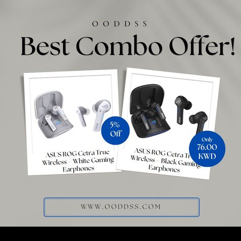 • ASUS ROG Cetra True Wireless – White Gaming Earphones Earbuds Headphones Active Noise Cancelation (ANC) & ASUS ROG Cetra True Wireless – Black Gaming Earphones Earbuds Headphones Active Noise Cancelation (ANC)