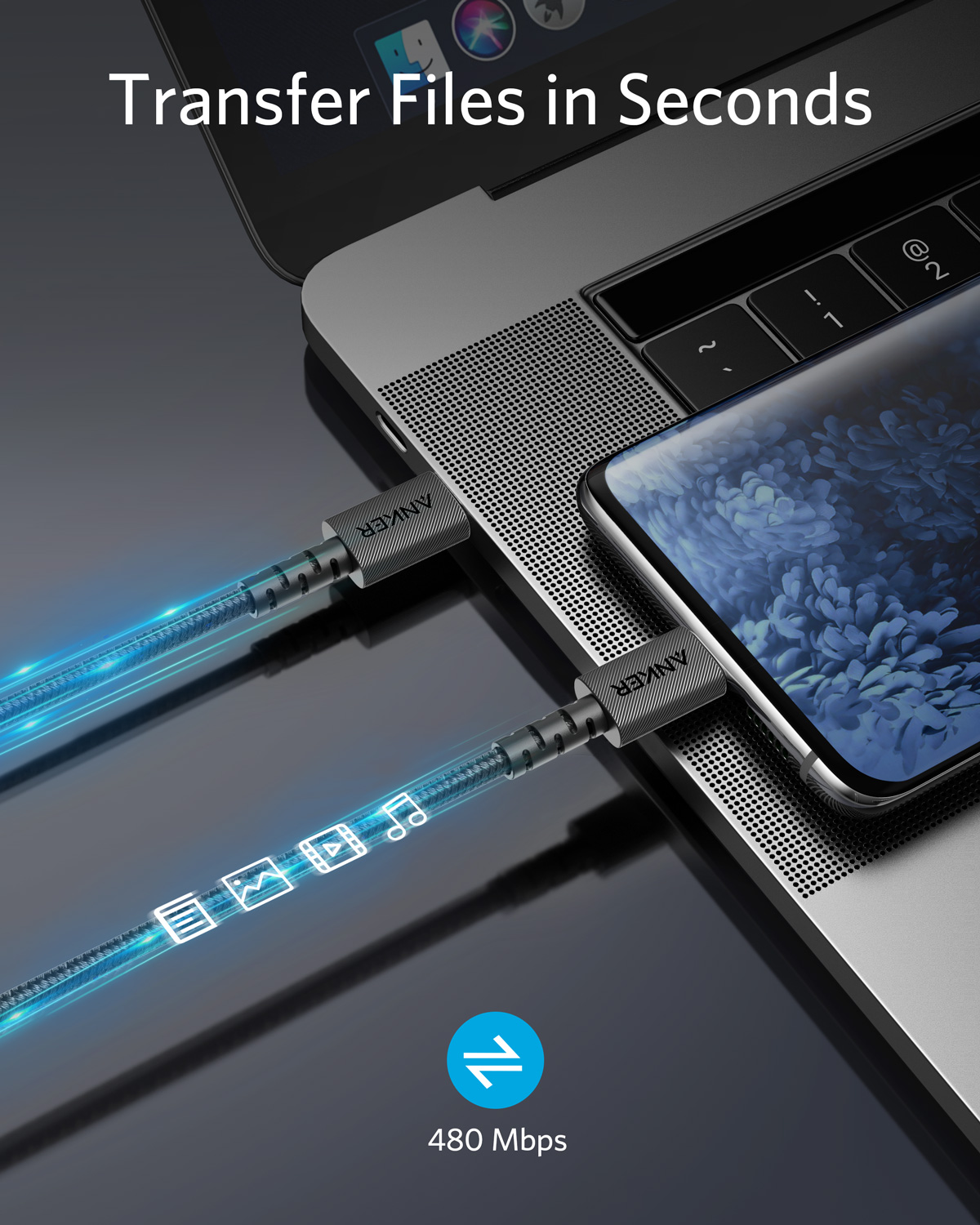 Anker PowerLine Select+ USB-C to USB-C (0.9m/3ft) -Black Charges phones and tablets with USB-C ports at high speed. Transfer speeds of 480 Mb/s, or 100 songs every 5 seconds. Compatible with USB-C device Double-braided nylon exterior Toughened Aramid Fiber Core