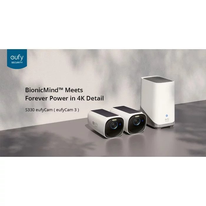Eufycam 3 – 2+1 kit (4K+Solar) eufy Security eufyCam 3 2-Cam Kit, 4K Wireless Security Camera with Integrated Solar Panel, Face Recognition AI, eufy Security Camera with expandable local storage, Forever Power Outdoor Camera, Spotlight and Color Night Vision, No Monthly Fee. See 4K Detail Day and Night: Spot tiny features on any potential trespasser (human or animal) with eufyCam 3—even at night. The Starlight photosensitive system enhances low light conditions for clarity in color. .Forever Power Durability: eufyCam 3 is self-sustaining in any outdoor environment with an integrated solar panel only needing 2 hours of daily sunlight for Forever Power. Local Expandable Storage: With eufyCam 3, you’re in control of your own data with military-grade encryption. You can even install a hard drive (not included) to expand to up to 16TB of storage, all for no monthly fee. BionicMind™ AI Empowers Your Security: See the true potential of your security with BionicMind™—providing facial recognition that differentiates between family and strangers with self-learning AI. Put Yourself in Control: Feel at ease conveniently controlling eufyCam 3 with voice activation via Alexa and the Google Assistant, and clear two-way audio. You can even set activity zones to avoid false alarms.
