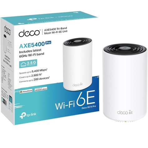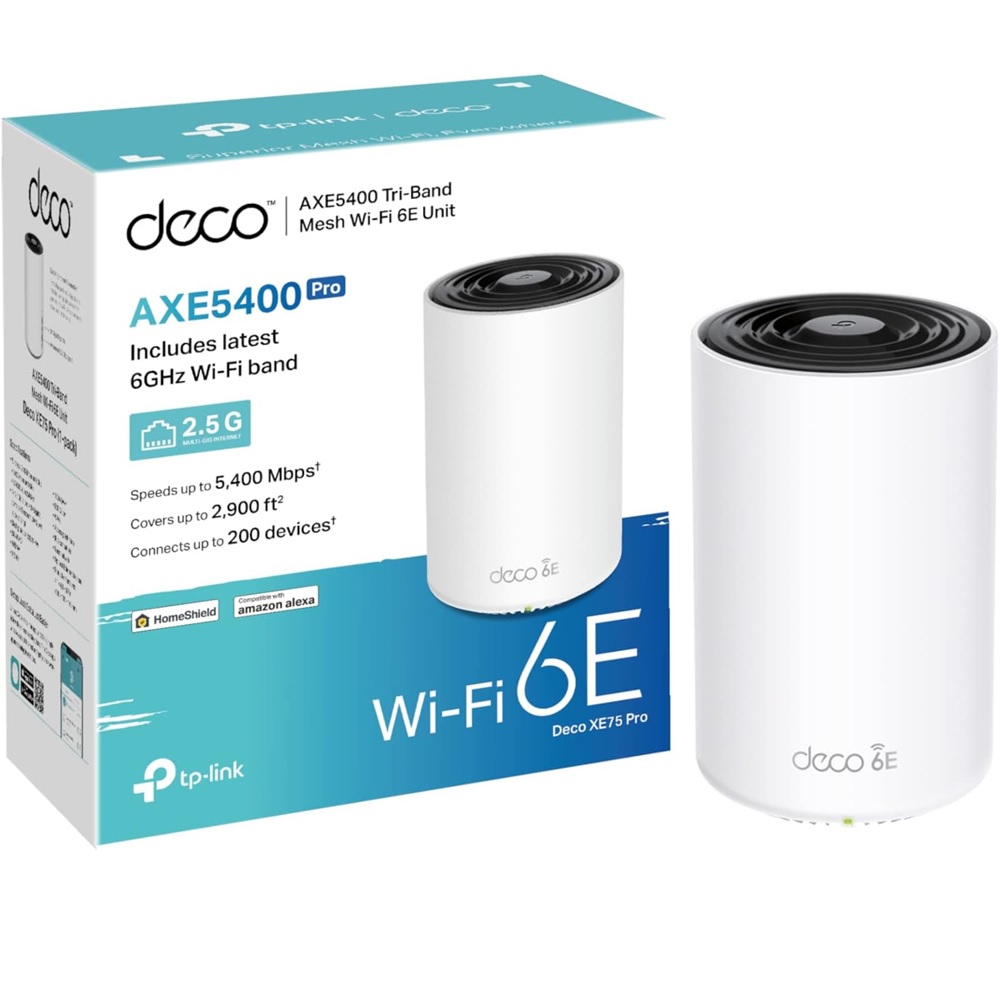 - TPLINK Deco XE75 Pro AXE5400 Tri-Band Mesh Wi-Fi 6E System | 1-Pack