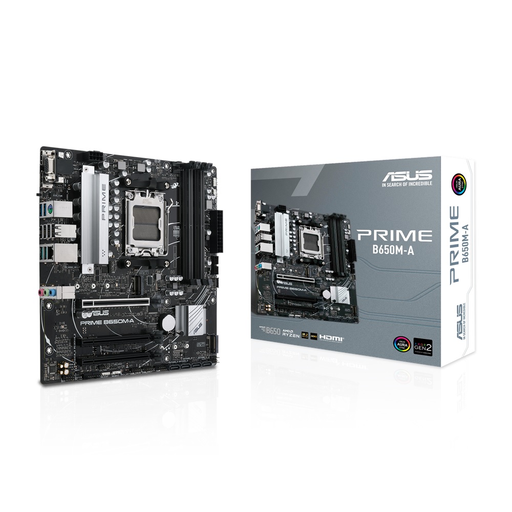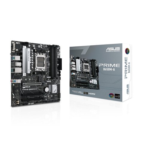 ASUS PRIME B650M-A AMD Socket AM5 for AMD Ryzen 7000/8000 Series 2 x M.2 slots and 4 x SATA 6Gb/s ports 4 x DIMM, Max. 128GB, DDR5 RAM
