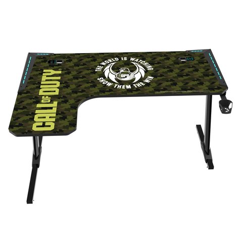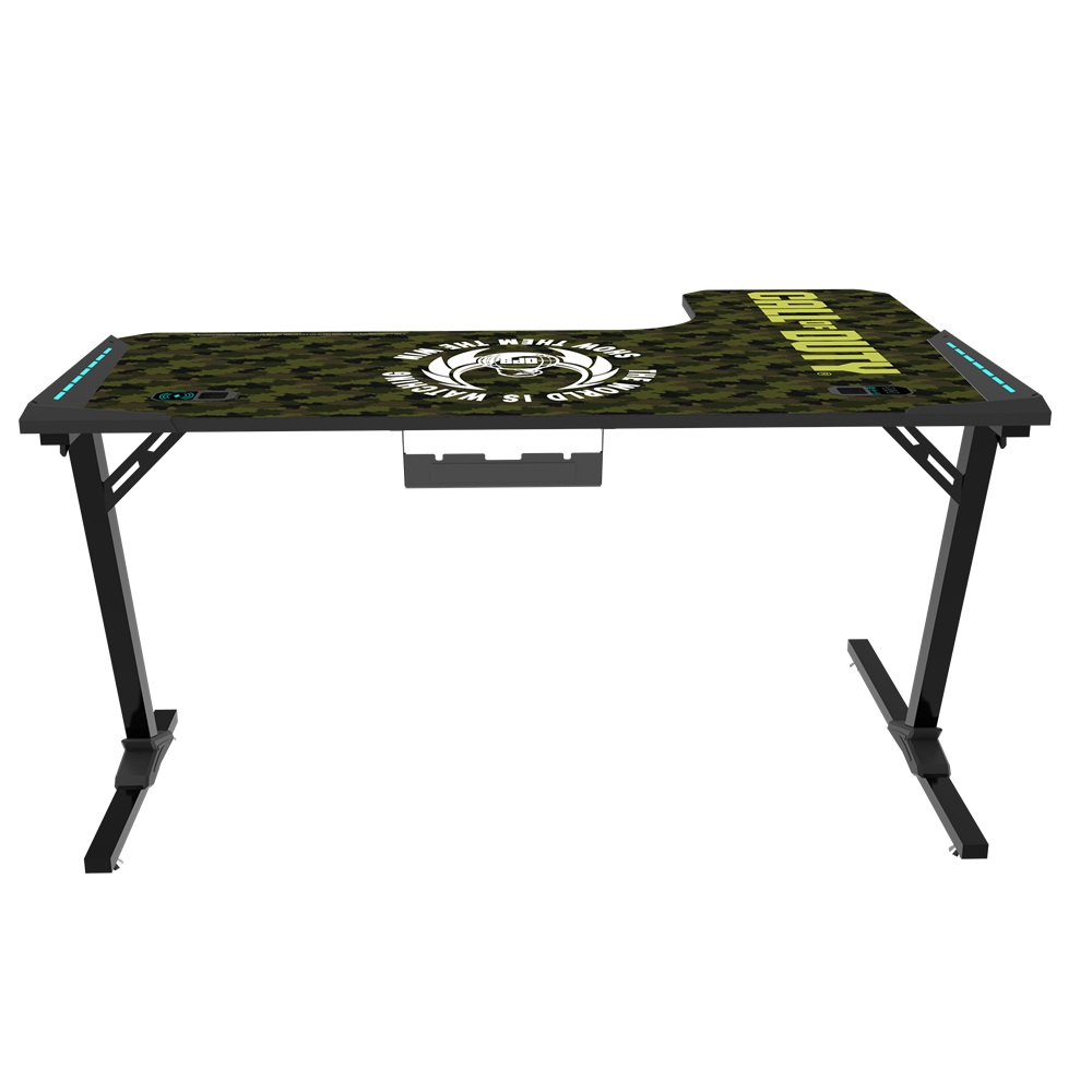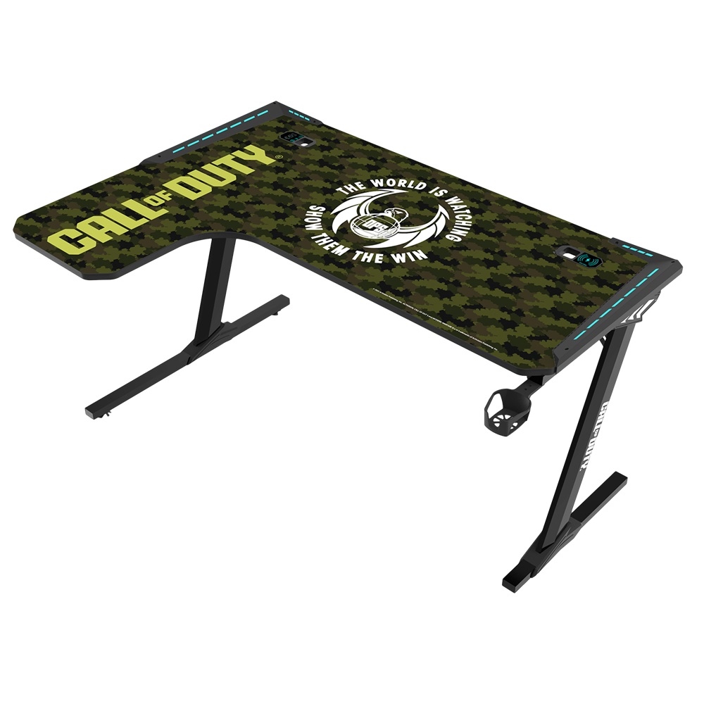 - GameOn Call Of Duty (COD) Phantom XL-L Series L-Shaped, Black/Green, RGB Flowing Light Gaming Desk With Mouse pad, Headphone Hook, Cup Holder, Cable Management, Gamepad Holder, Qi Wireless Charger & USB Hub