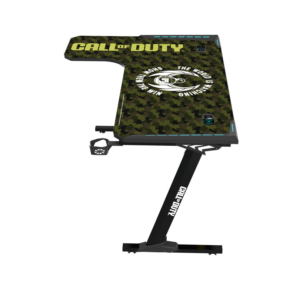 This COD inspired gaming desk is provided with a built-in power strip with USB Ports, and Charging points which can easily charge smart phones, computer, tablet, notebook or gaming gears and provide power for multiple devices. With cup holder, headset hook, and LED control panel, this is a perfect desk for any gaming setup.