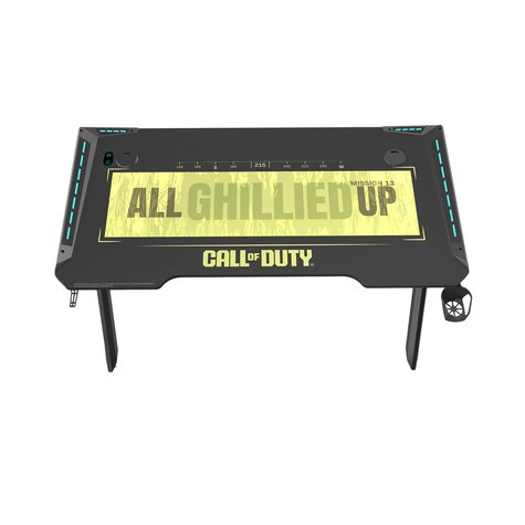 GameOn Call Of Duty (COD) Hawksbill Series, Black/Green, RGB Flowing Light Gaming Desk With Mouse pad, Headphone Hook & Cup Holder – Black/Green