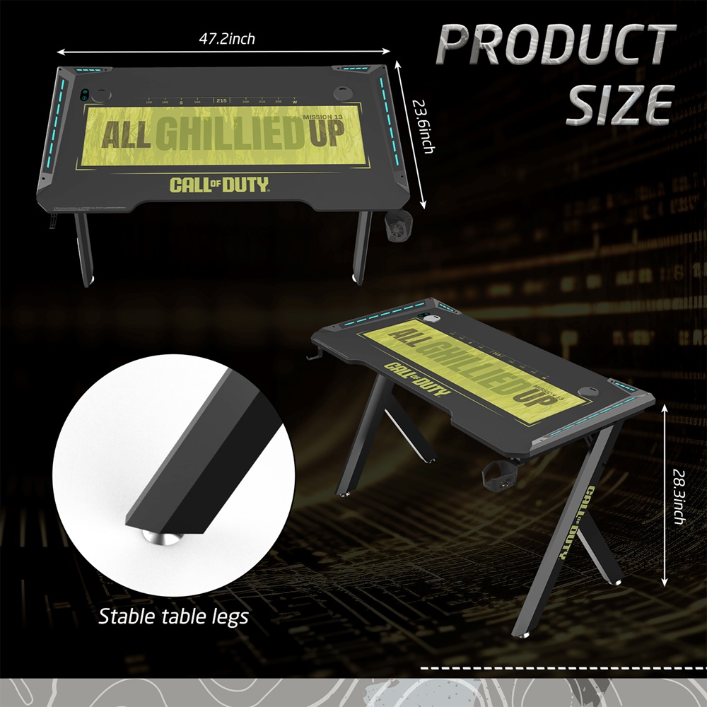 Dive into the exhilarating world of your beloved games with our Call of Duty-inspired gaming desk. Drawing inspiration from the pulse-pounding battles and ever-changing landscapes of the renowned franchise, this gaming desk seamlessly blends style with practicality.