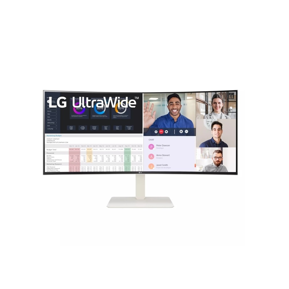 - LG 38″ WR85QC 144Hz 1ms Nano IPS UltraWide Curved Monitor HDR600 WQHD HDMI 2.1 USB-C 90W KVM Speaker, White