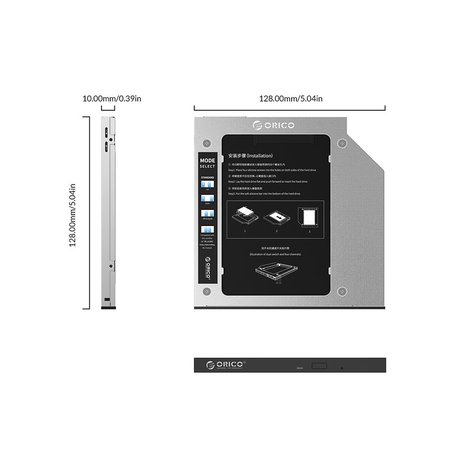 This caddy from Orico is suitable for SATA I, II, III SSD and HDD disks from 2.5 inch to a thickness of 9.5 mm. SATA 3.0 improves the use of the hard disk, the second storage works faster and you can achieve a theoretical transfer speed of up to 6Gbps.