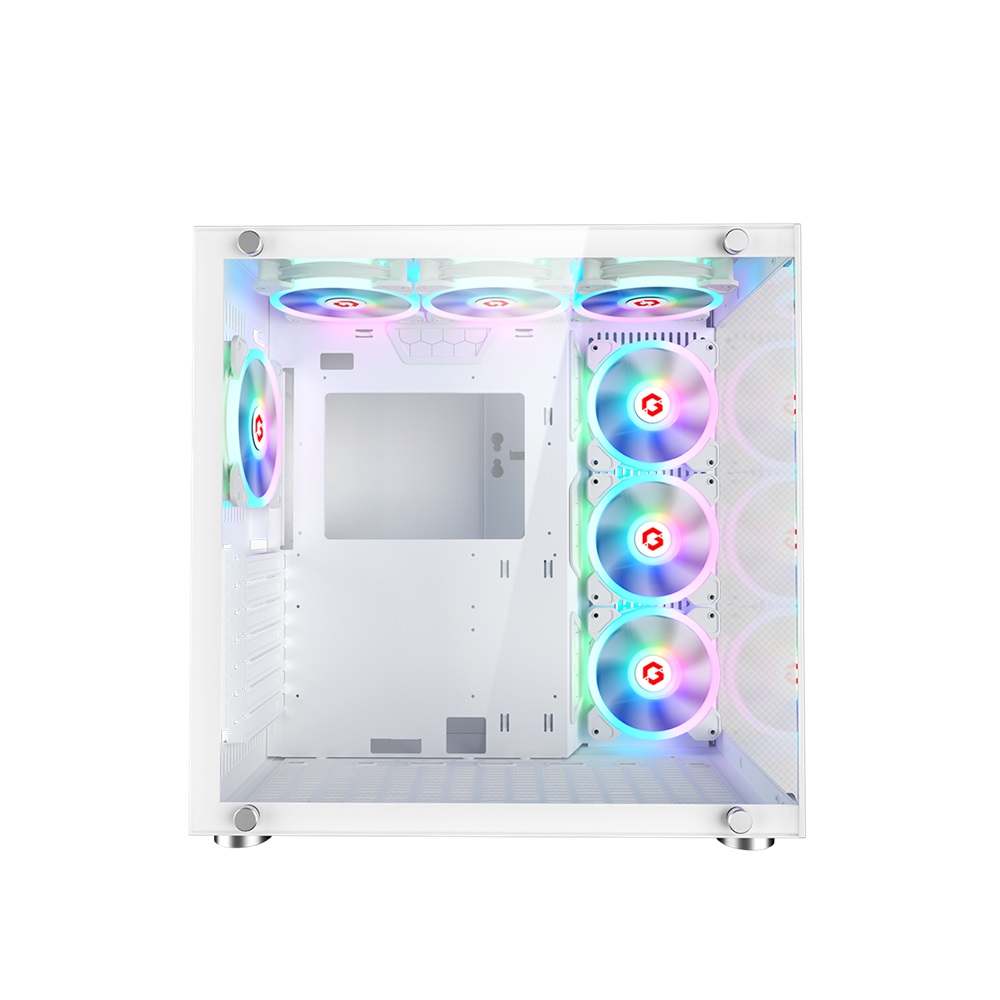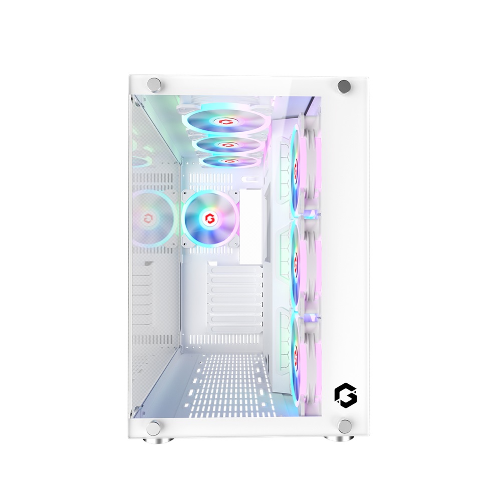 - GameOn Emperor Arctic II Series Mid Tower Gaming PC Case – White (7-Fans)