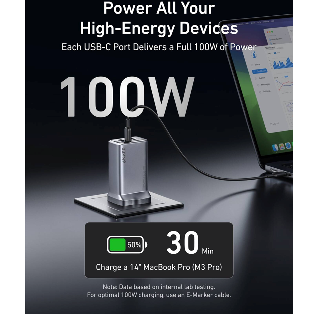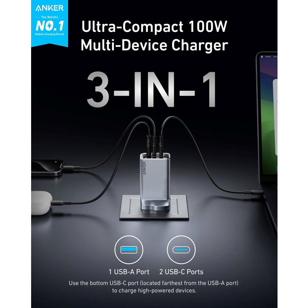 • Anker A2688 Prime Charger (100W, 3 Ports, GaN) Fast Charging Adapter – Black