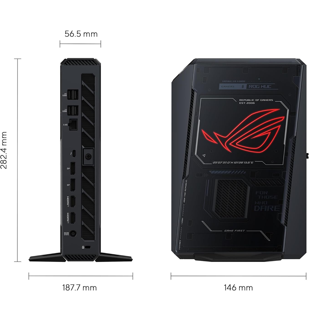 ASUS ROG NUC Intel® Core™ Ultra 9 Processor 275HX (36MB Cache) 16GB GDDR7 VRAM Nvidia Geforce RTX 5070Ti Graphics 1TB Gen4 NVMe SSD (1x M.2 slot PCIe x4 Gen4) 32GB (2x 16GB) DDR5-5600 RAM (Support 48GB) 1x Thunderbolt™ 4 | 1x HDMI2.1 | 2x DP 2.1 WiFi 7 | Bluetooth 5.4 | 4x USB-A Ports Windows ®11 Home 64-bit